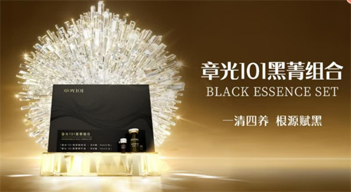 本次发布的“章光101黑菁组合”,是品牌针对发色问题推出的高端科技养护方案。产品采用“外抗氧+内调控”双效协同理念,通过现混双瓶设计,旨在保障活性成分的稳定性与有效性。