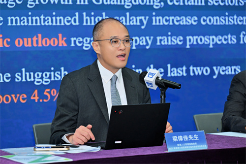 香港人才管理协会会长兼2025粤港澳大湾区薪酬及福利调查委员会主席梁伟佳先生介绍调查的主要结果。