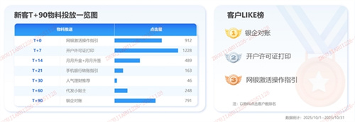 同时为持续激活用户活跃度,团队创新推出T+90日运营活动体系。在用户添加企业微信后的不同阶段,设置阶梯式活动:新用户阶段推出“网银激活操作指引”,吸引客户快速上手;成长阶段开展“月月升金、月月升签”等互动活动,增强客户粘性;成熟阶段推出人气理财推荐等增值服务,提升客户忠诚度。同时,结合市场动态与客户需求变化,持续优化理财产品策略,推出多款定制化理财组合,满足不同风险偏好客户的财富增值需求。