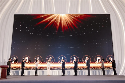 随后,启幕仪式隆重举行。深圳市文化广电旅游体育局、龙岗区政府领导、保利文化集团等嘉宾莅临;丝路视觉集团董事、高级副总裁岳峰,集团副总裁王国杰,集团董事、艺术总监罗晓白,丝路蓝副总经理韩伟受邀出席,共同见证这一城市地标的正式亮灯。